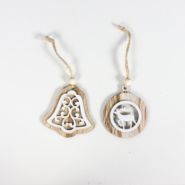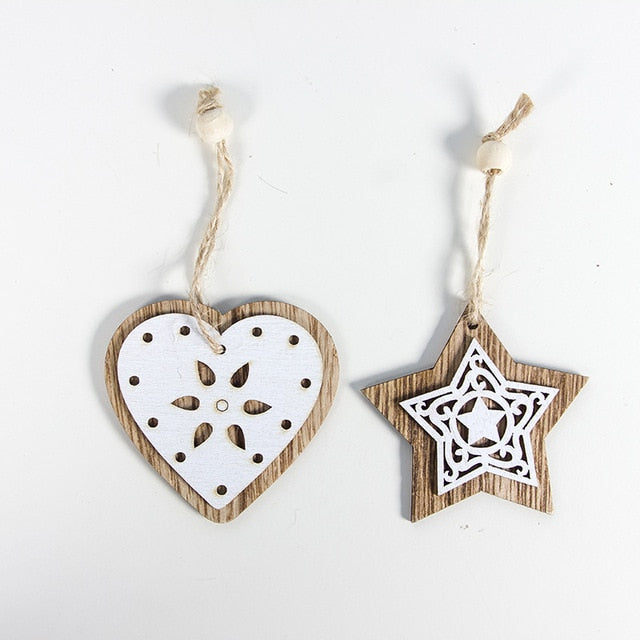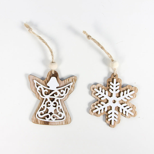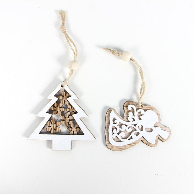 Creative Christmas Decoration Wooden Crafts Star Heart Elk Angel Bell Christmas Tree Hanging Pendants Ornaments Xmas Party Decor
