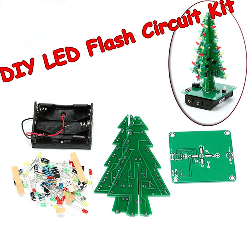 Three-Dimensional 3D Christmas Tree LED DIY Kit Red/Green/Yellow LED Flash Circuit Kit Electronic Fun Suite Christmas Gift
